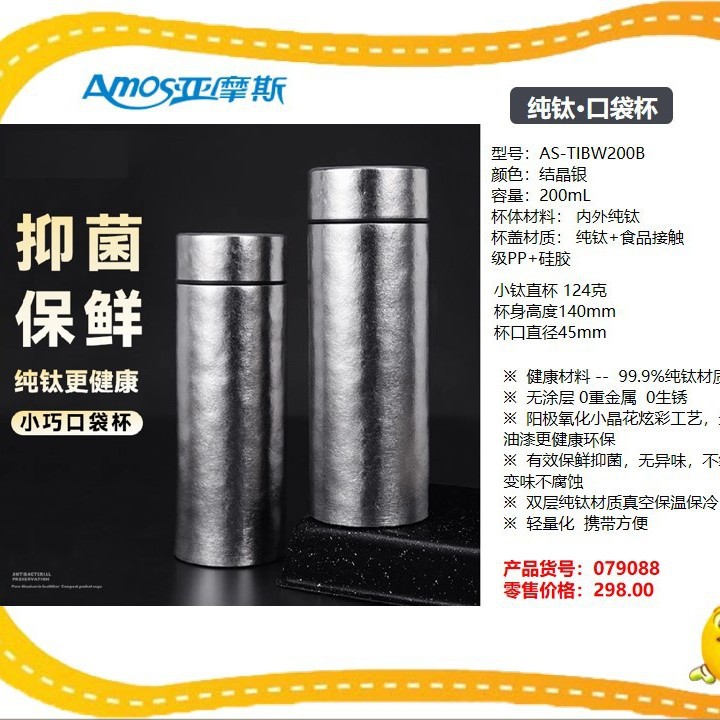 アモスAS-TIKF400純チタンカップチタン妃カップ抗菌ロック新鮮酸アルカリ無重金属長期保温カップ