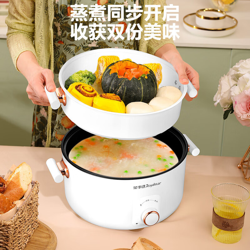 栄事達電気鍋5L電気煮鍋蒸煮一体不着鍋寮蒸し器電熱鍋RHG05F