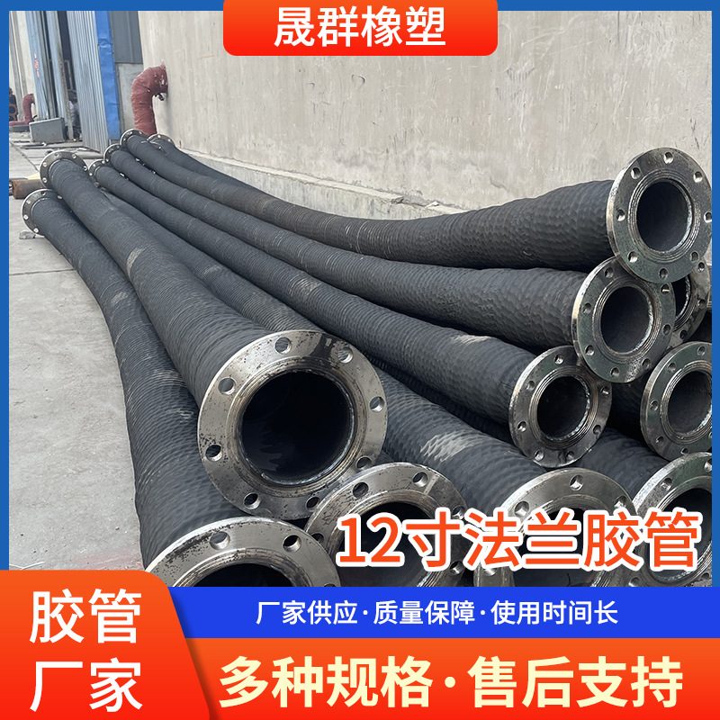 源工場水ポンプセット用ゴム水管設備排水送水10インチ12インチブラックフランジホース