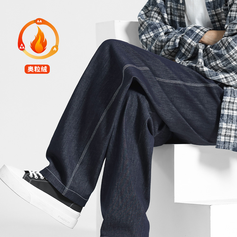 メンズジーンズ 2025秋冬新作 ヴィンテージウォッシュ加工 ワイドレッグ カジュアルパンツ ゆったり スポーツ風 裏起毛 ストレートパンツ