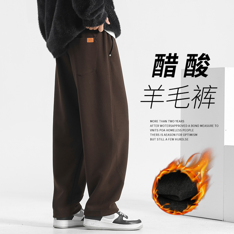 ズボンの男性は冬にベルベットを厚くして、子羊のベルベットのカジュアルなズボンを温めて、ストレートパンツの厚い男性のスポーツパンツを温めます
