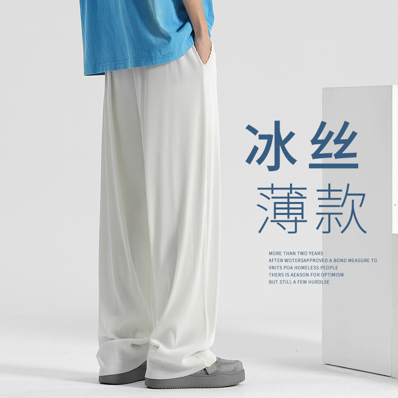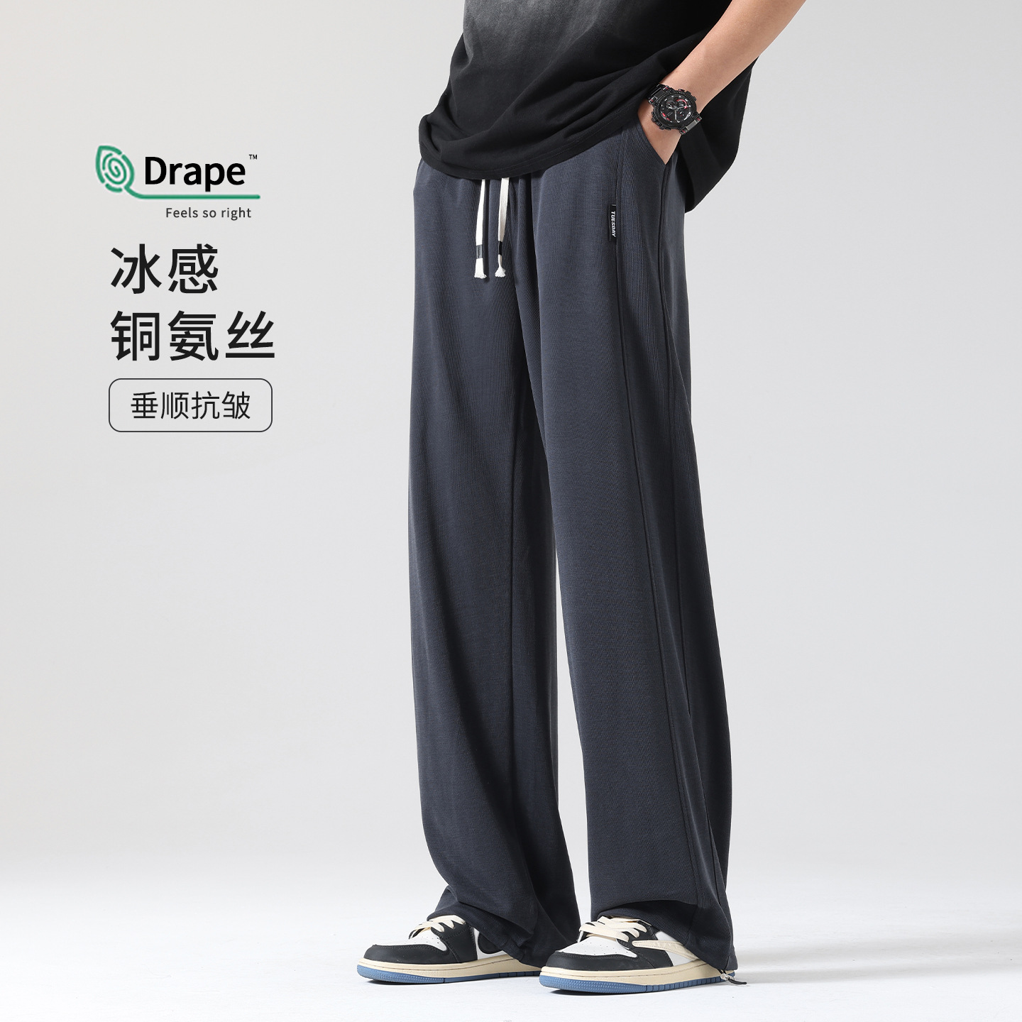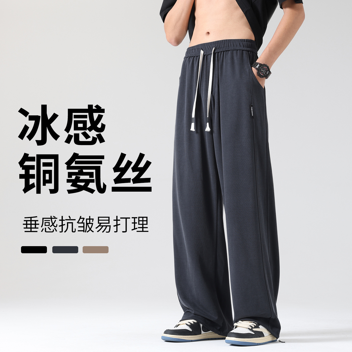 夏のカジュアルパンツ男性のゆるい薄いタイプ2025の新しいストレートズボンのスポーツパンツの高級な垂直感の氷のズボン