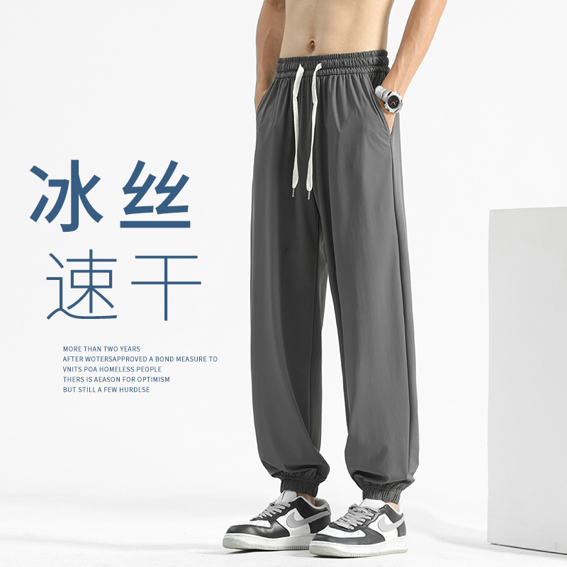 速乾ズボン男子夏氷糸ズボン2025新型薄手カジュアルパンツゆるい男性ズボン束足衛ズボン