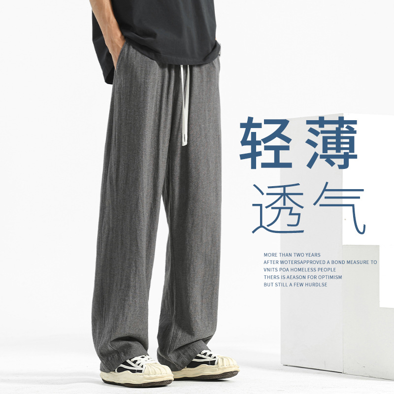 高級垂れ感ストレートパンツ男性タイプ夏の薄いタイプのゆるい綿麻スポーツパンツワイドレギンス