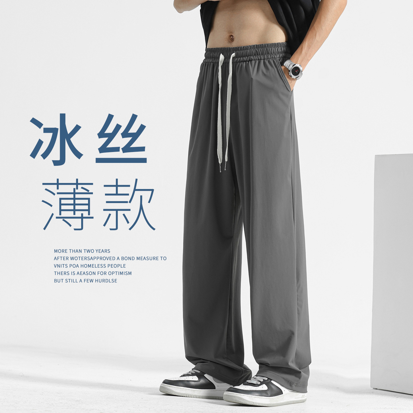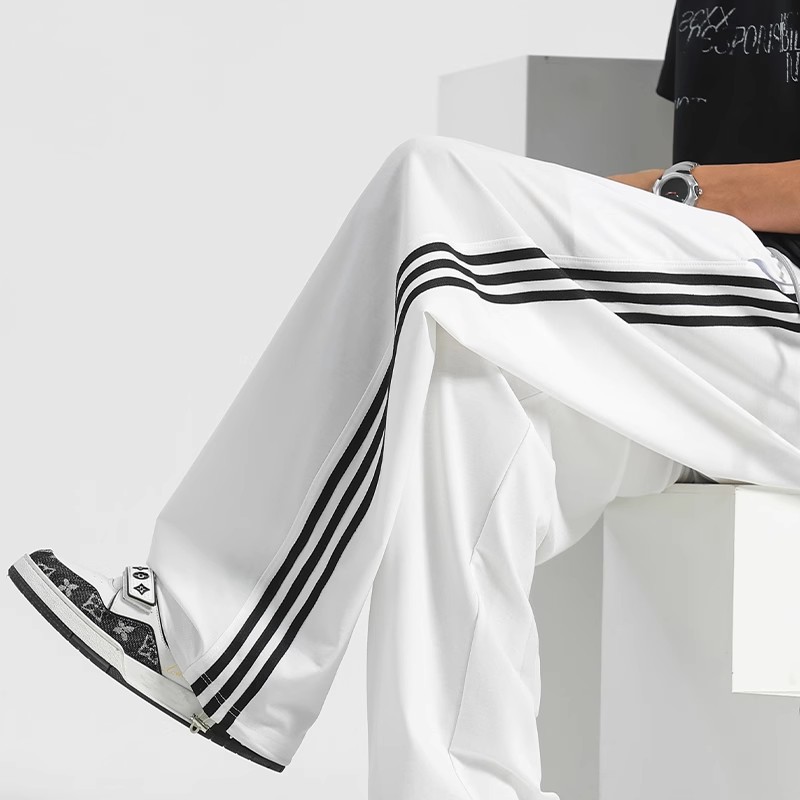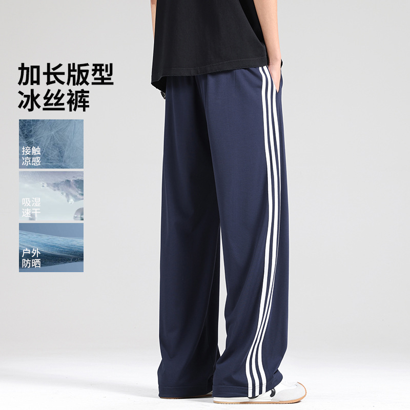 氷糸ズボン男性新夏薄感ストレートカジュアルパンツ三条棒スポーツパンツ男性延長夏ズボン