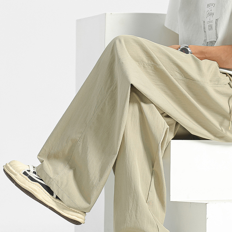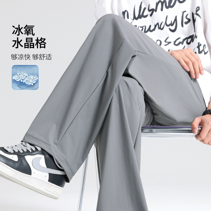 卸売カスタマイズされたアイスシルク速乾性ストレートパンツメンズ夏薄い 2025 新しいルーズワイドレッグスポーツアイスシルクパンツ