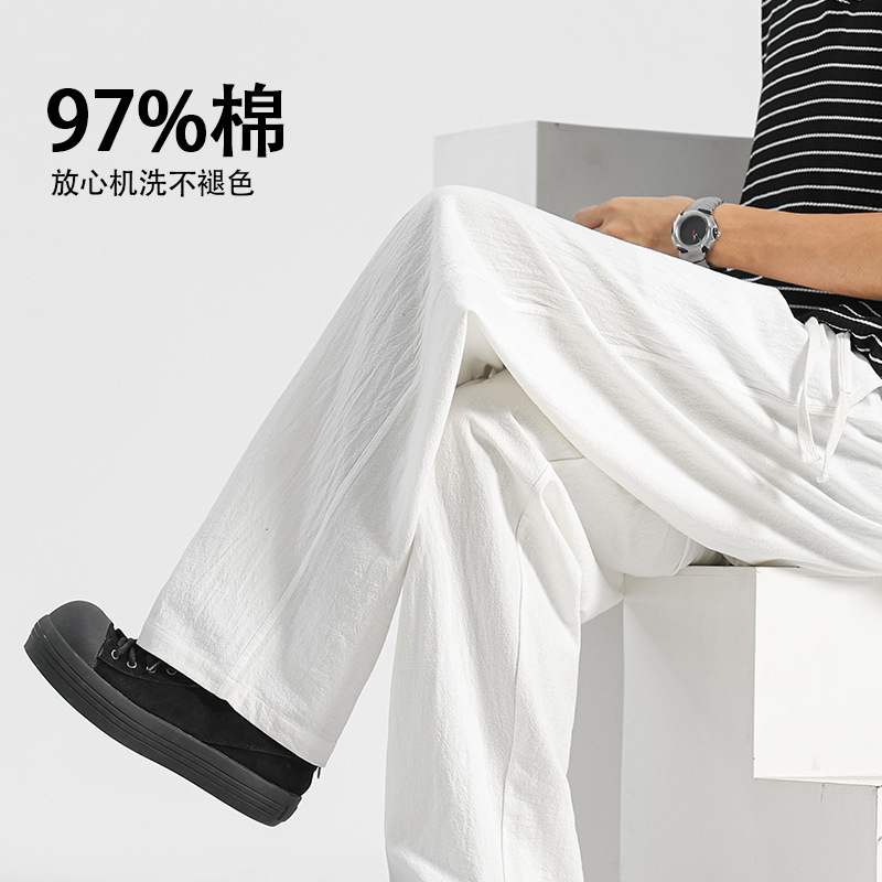 カジュアルパンツ男性タイプの夏の薄いストレート綿ズボン2025新型ゆるいスポーツパンツ白い男性ズボン