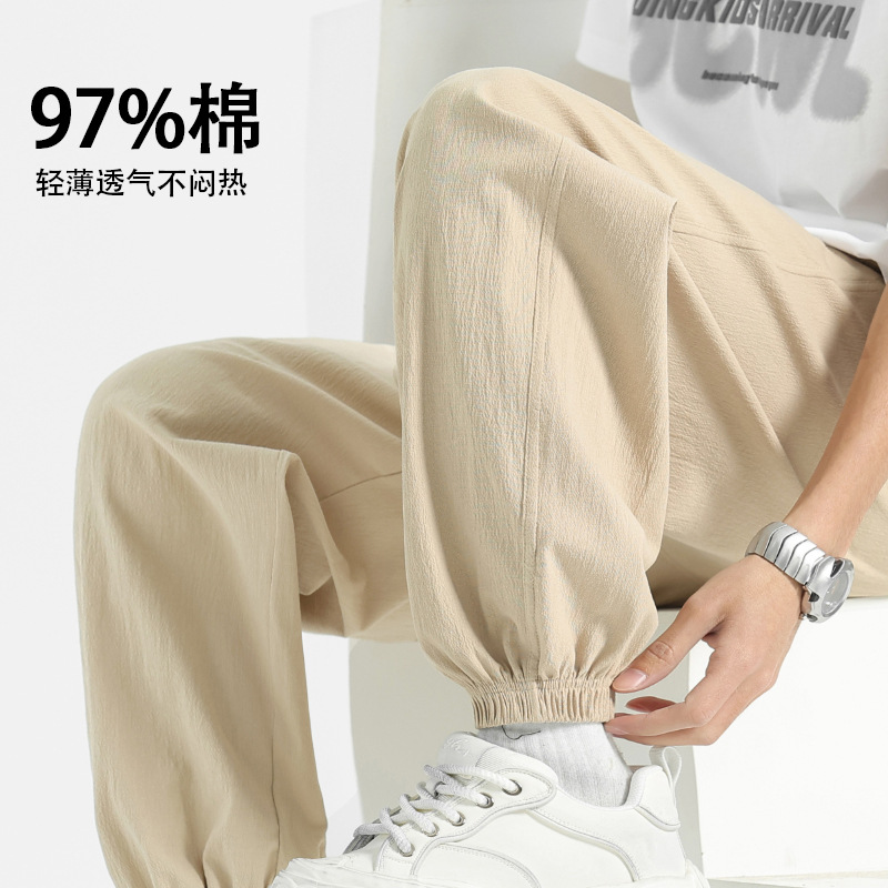 カジュアルパンツ男性タイプの夏の薄いストレート綿ズボン2025新型ゆるいスポーツパンツ白い男性ズボン