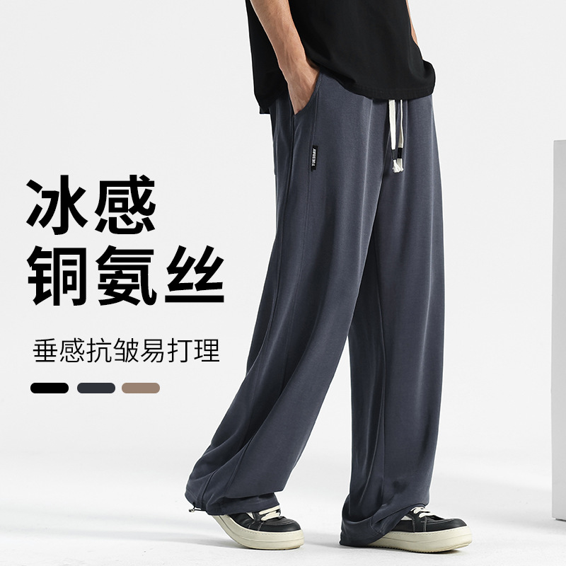 銅アンモニアの男性のズボン2025新型のカジュアルなズボンの夏の氷のズボンの男性の運動の広い足のストレートなズボンの薄いズボン