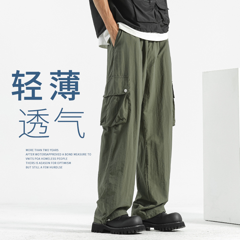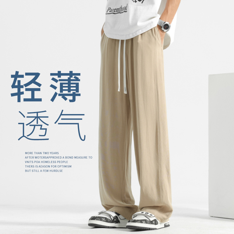 アイスシルクワイドレッグパンツメンズ夏薄いカジュアルパンツ新しいストレートパンツドレープスポーツパンツ速乾性メンズパンツ
