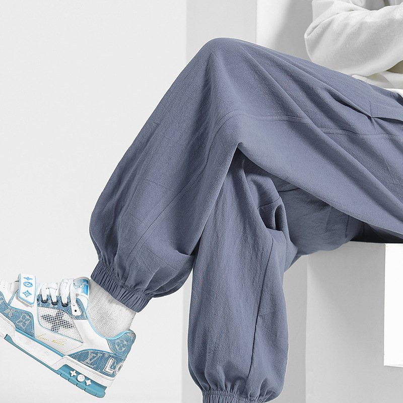 氷のズボンの男性の夏の薄いタイプのカジュアルなズボンの垂れ下がった感じのストレートなズボンの新型のスポーツのズボンの広い足のズボンの速乾の男性のズボン
