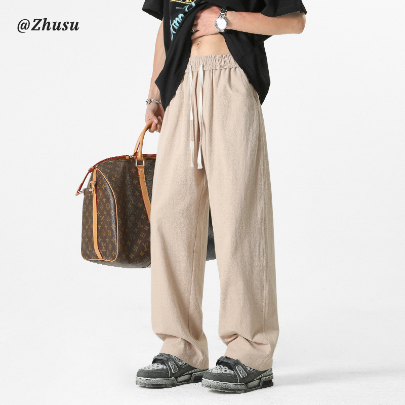 亜麻のズボンの男性のタイプの夏の新型の綿麻の男性のズボンの2025新型の運動の広い足のまっすぐなズボンの薄いタイプのカジュアルなズボン
