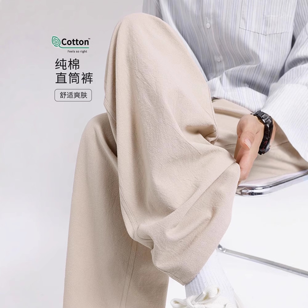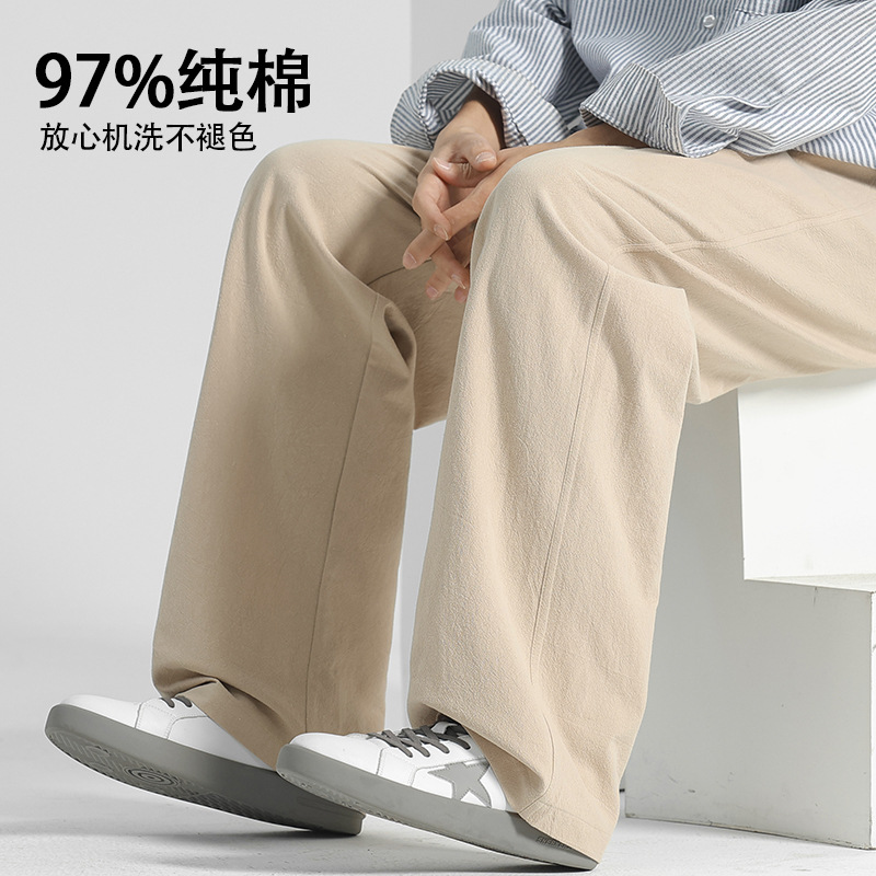 綿麻カジュアルパンツ メンズ 夏 スポーツパンツ ゆったりとしたドレープ感 純綿ストレートパンツ 2025年新作 秋 スウェットパンツ