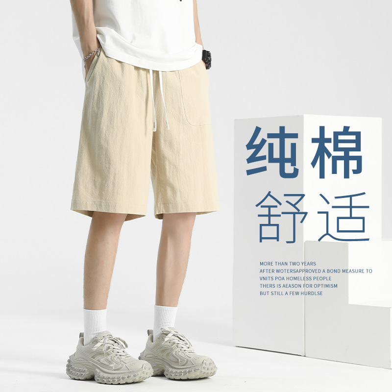 夏の半ズボンの男性のゆったりした大きいサイズの運動服の5分のズボンの2025新型の純綿の男性の薄いタイプのカジュアルな中ズボン