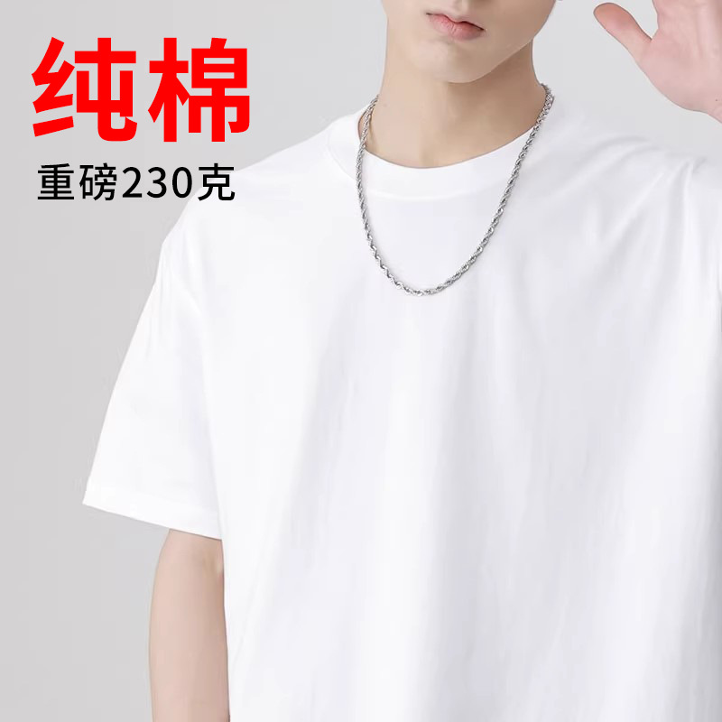 100% 純綿重ポンド半袖男性tシャツ夏2025新型ゆるい純色丸襟半袖男性シャツ