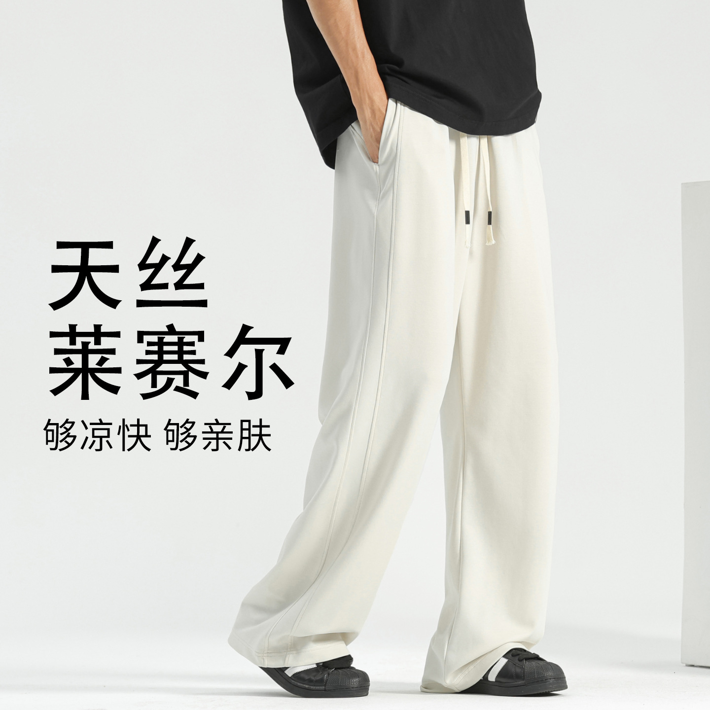 メンズパンツ秋リヨセル 2025 新しいドレープストレートパンツワイドレッグスウェットパンツ春と秋のメンズカジュアルパンツ