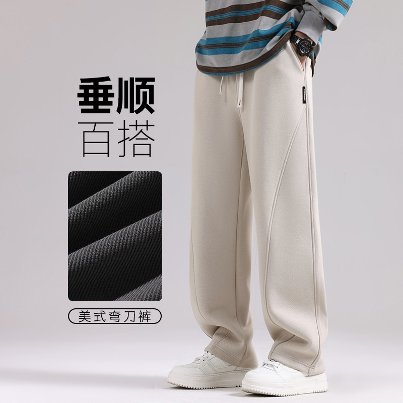 メンズ秋新作ストレートカジュアルパンツ、ワイドレッグパンツ、ゆったりバナナパンツ、春秋スウェットパンツ