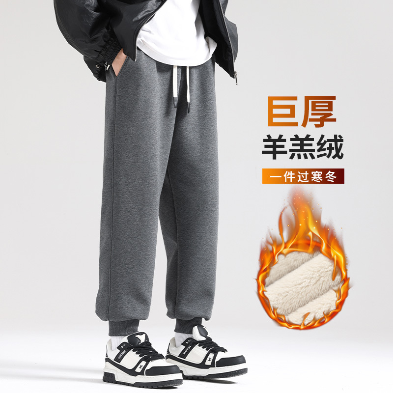 羊の小毛のズボンの男性の冬の新型のベルベットの厚いスポーツのズボンのゆったりしている保温のカジュアルなズボンの潮のブランドの足の衛のズボン