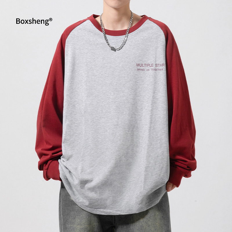 純綿のプリントの長袖のtシャツの男子学生のアメリカ式のファッションの丸首の底のシャツの春秋の金は色の衛衣のカップルの服にぶつかります。