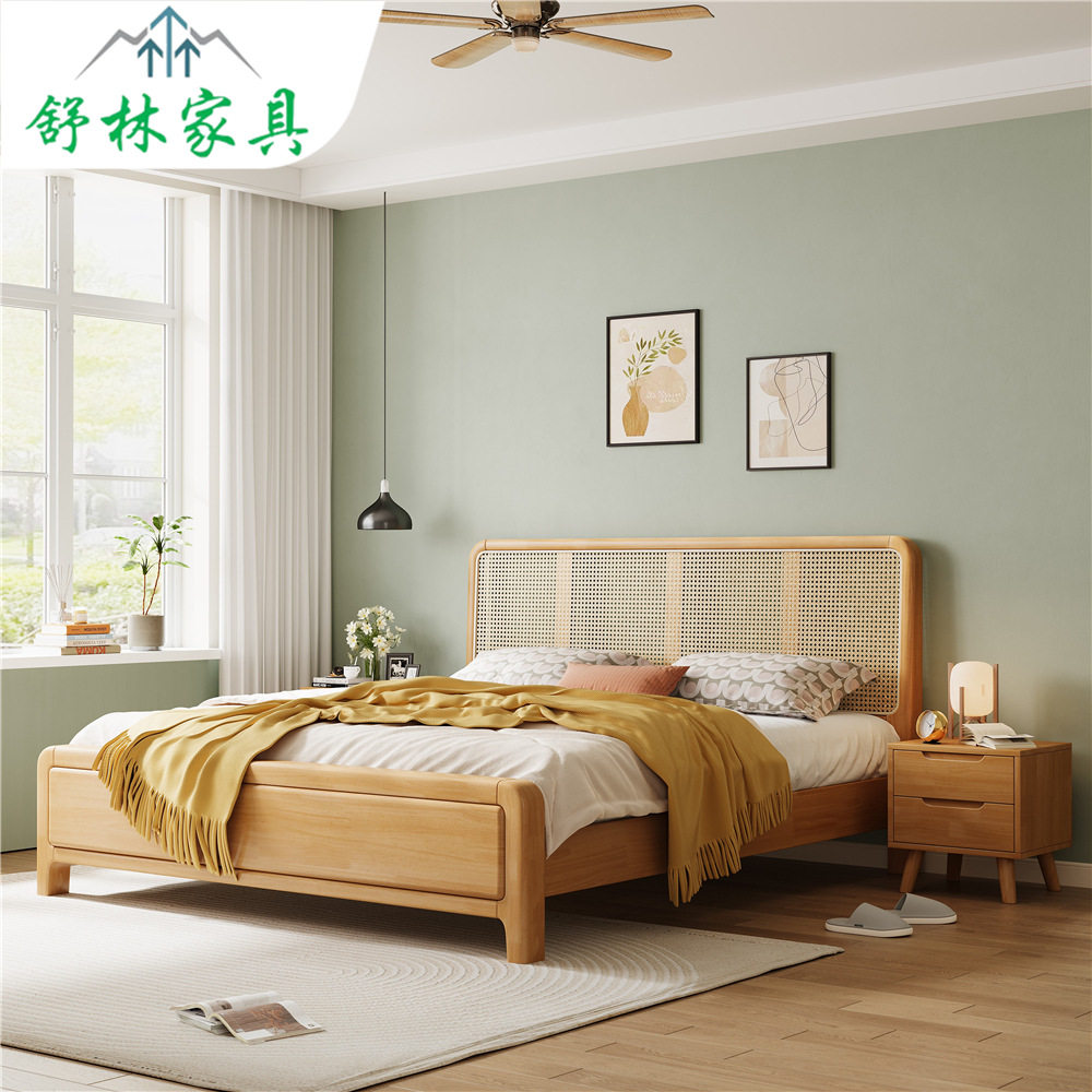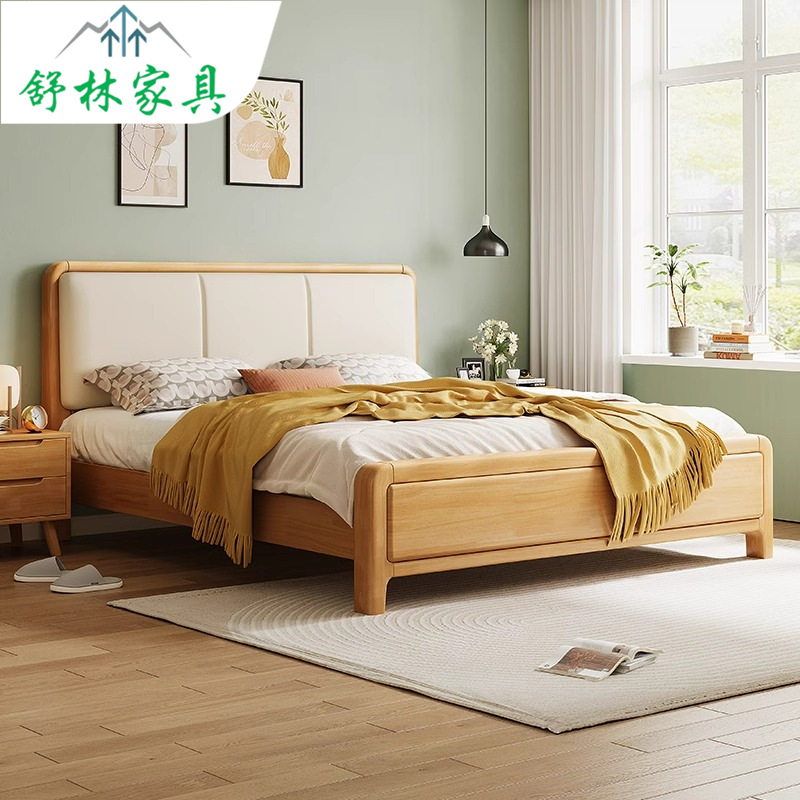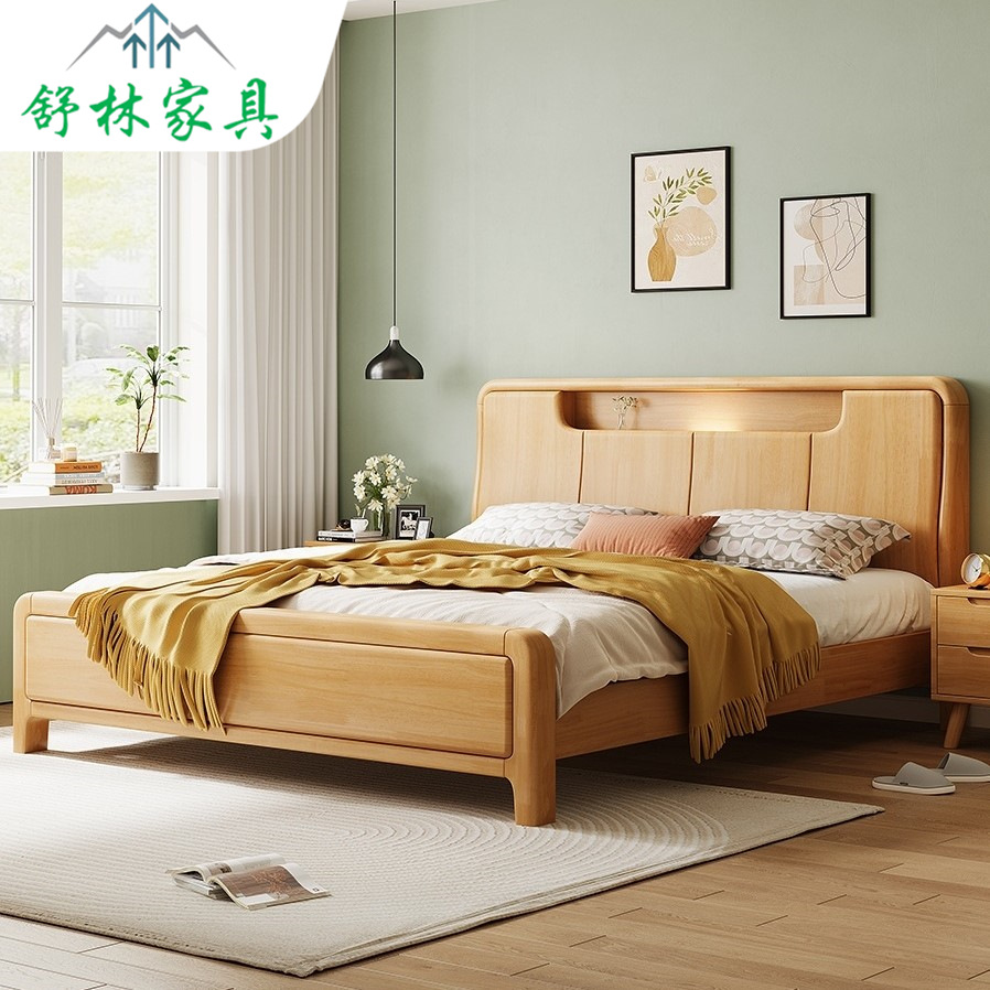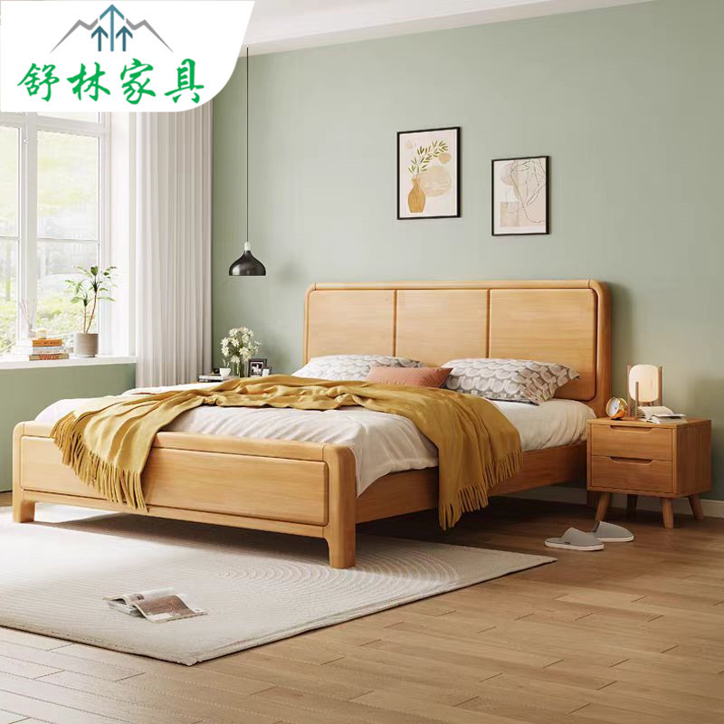 北欧原木風実木ベッド家庭用1.8mベッド主寝ツインベッドシンプル1.5m引き出し収納ベッド結婚ベッド