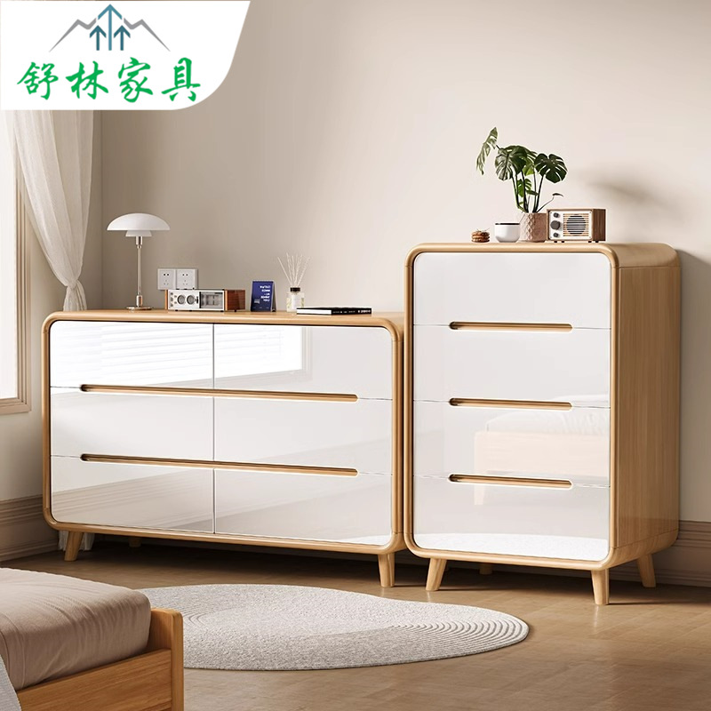 北欧の木のタンスの寝室のロッカーの開放式のカーテンのキャビネットのシンプルな家庭用のカーテンの大容量の収納のタンス