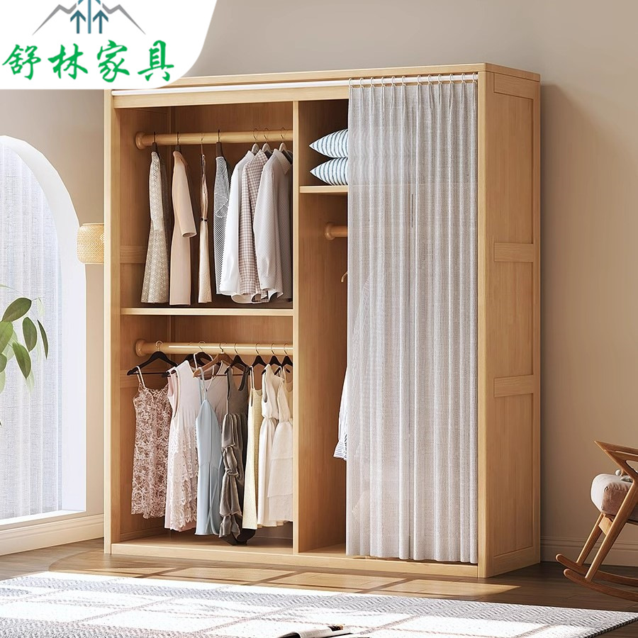 北欧全実木箪笥小戸型家庭用防塵カーテンタンス現代シンプル大容量収納ロッカー