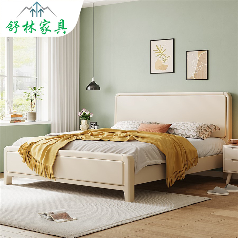 クリーム風実木ベッド白色1.8メートル現代シンプル軽贅沢ベッド主臥1.5m家庭用ツインベッド収納ベッド