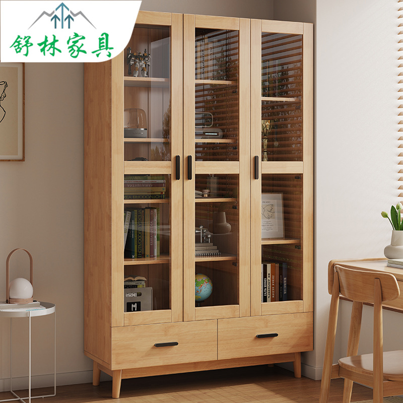 実木本棚ガラス付き客間家庭用展示棚現代シンプル児童夏休み着地事務書類棚