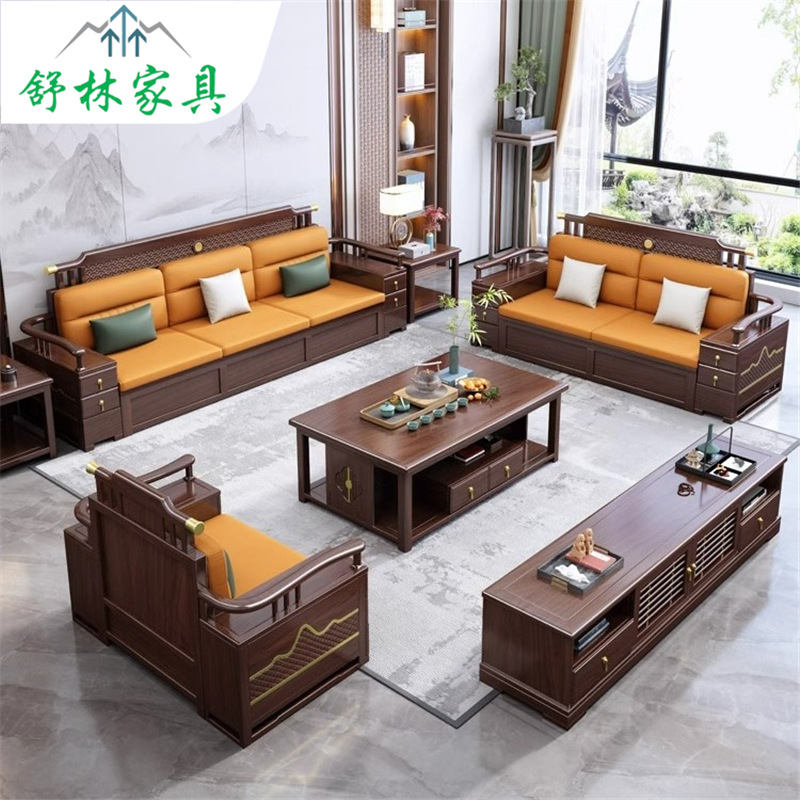 新中国式烏金木ソファセット軽豪華シンプル禅意大戸型中国式別荘客間木製家具