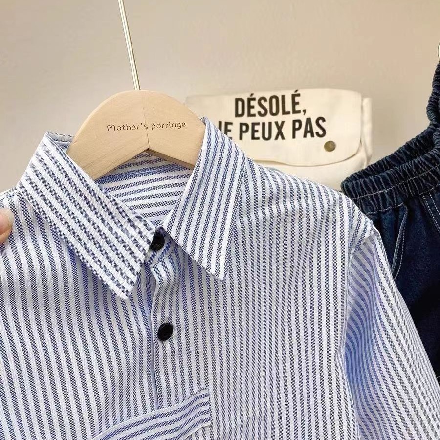 2024 秋の新ボーイズ長袖シャツストライプラペルトップカジュアルオールマッチングスーツ