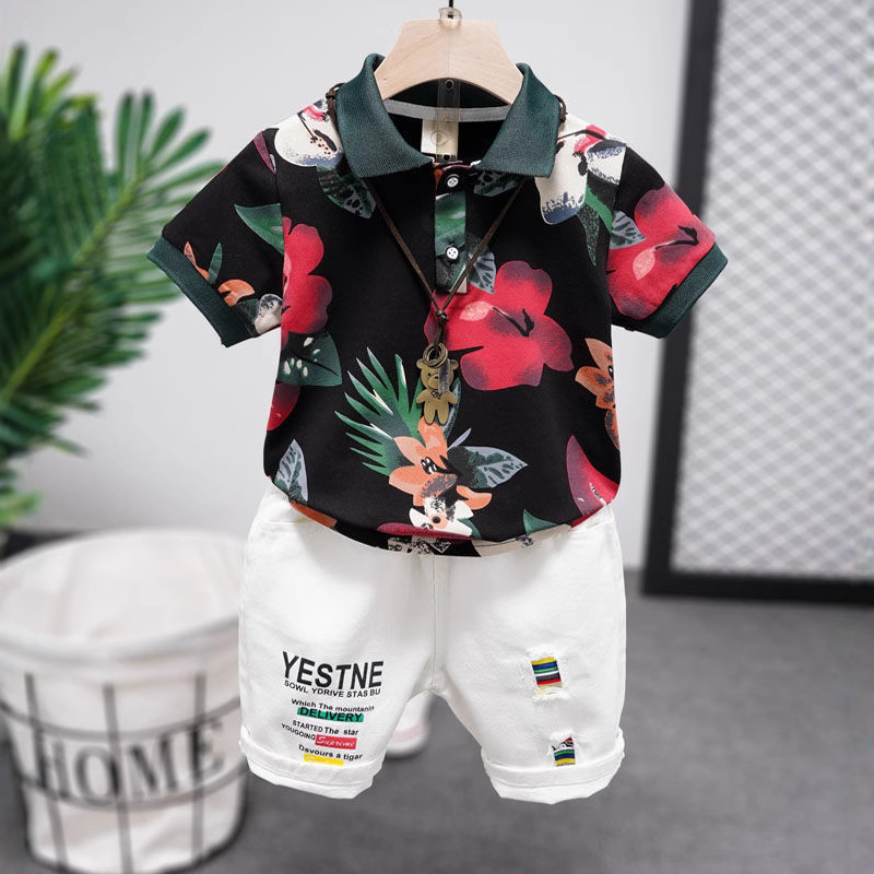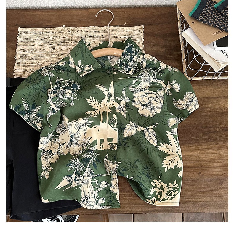 子供用シャツメンズ夏半袖トレンディフラワーファッションボーイズストリートプリントシャツ西洋スタイル香港スタイルベビーボーイスーツ休暇