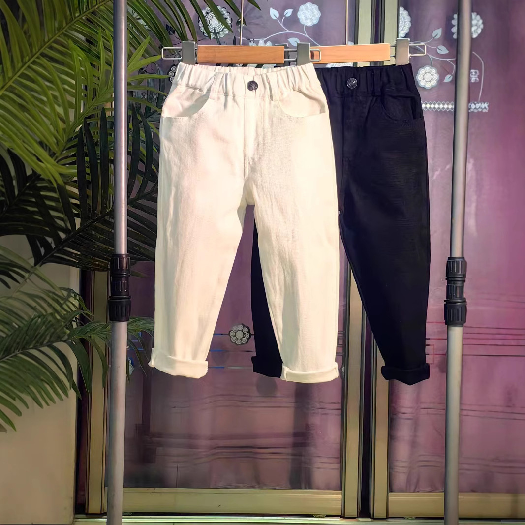 子供の黒と白のストレッチカジュアルパンツ 2024 秋と冬の新しい韓国スタイルの男の子カジュアルパンツ女の子スリムフィットパンツ
