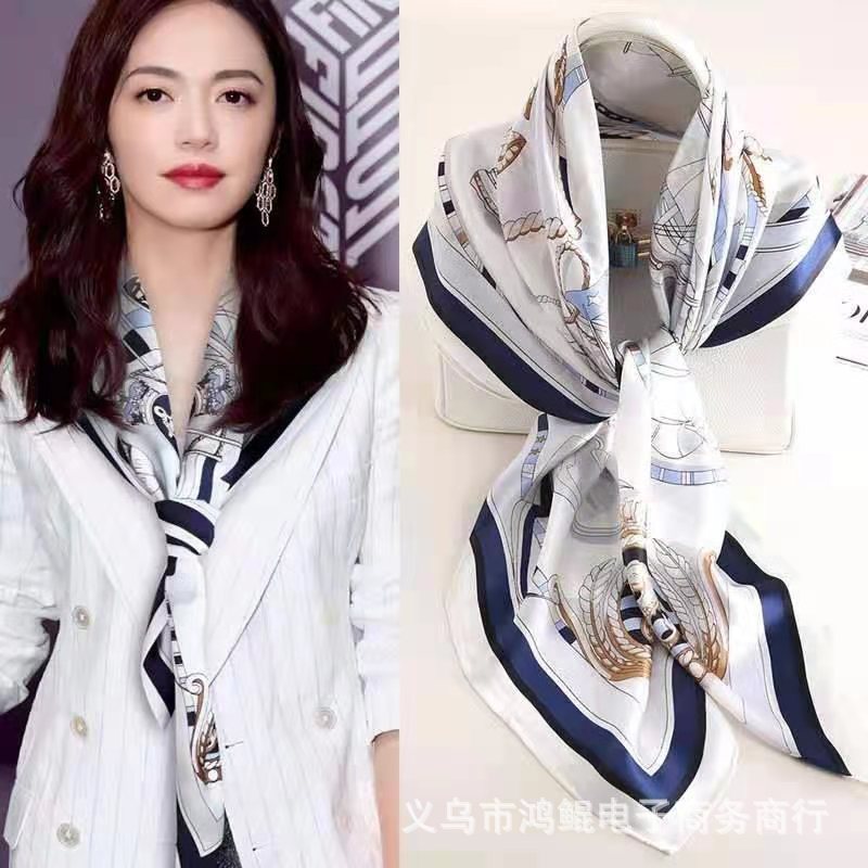 シルクプリントのシルクタオルを模倣して、頭のスカーフを包んで、春と秋の女性は小さなシルクタオルでマフラーを飾って、国境を越えて熱売しています