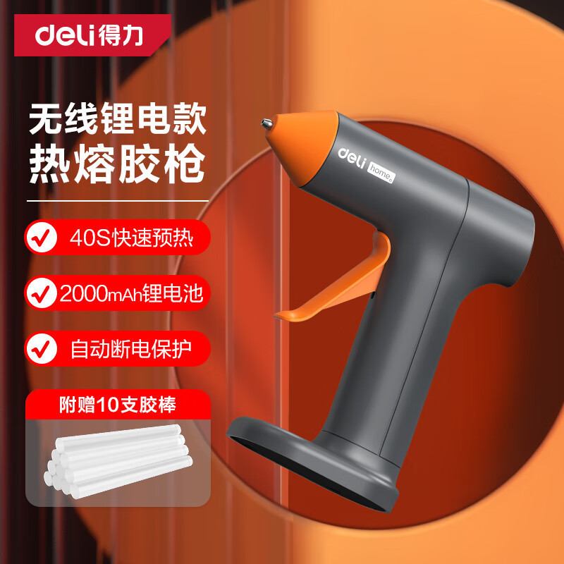 デリリチウム電気ホットメルトグルーガン、家庭用一般的なグルーガン、粘着防止、漏れ防止、自動スリープ、グルースティック10本付き