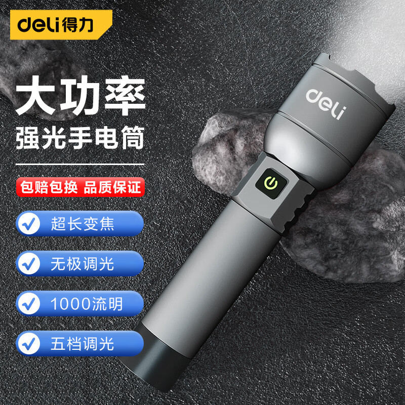 デリ強力な光懐中電灯ズーム長距離超長バッテリー寿命充電式屋外ミニ超高輝度サーチライト緊急ライト