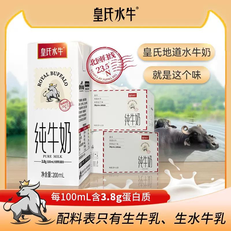 皇氏乳業全脂水牛乳純牛乳学生出勤朝食水牛乳200ml * 12箱/10箱