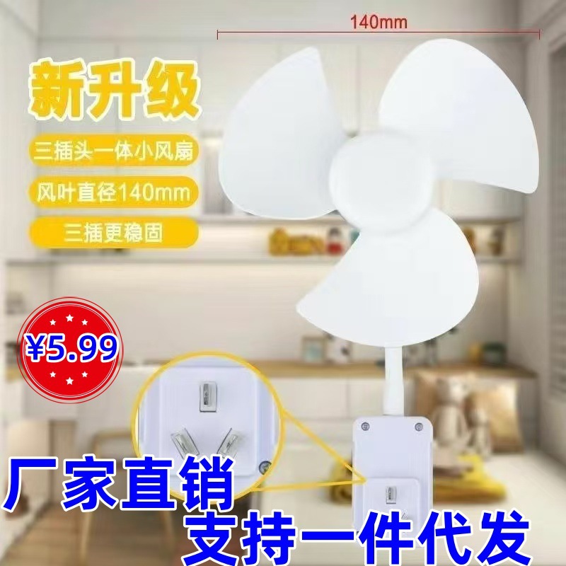 新加大三プラグ一体コンセント小扇風機家台扇装灯具家庭用小旋風コンセント扇風機