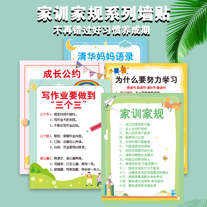 メーカー卸売ウォールチャート、家族の訓練とルール、小学生向けのウォールステッカー、子供たちにインスピレーションを与える教育家スタイルの壁掛け絵画、良い子供の自己規律