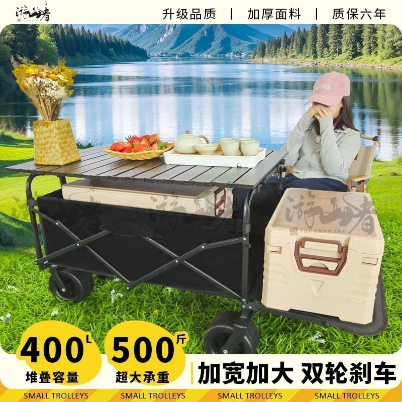 キャンピングカー屋外折りたたみ式トロリー特大キャンプカーピクニックカートレーラーキャンプ手タイロッド屋台カート