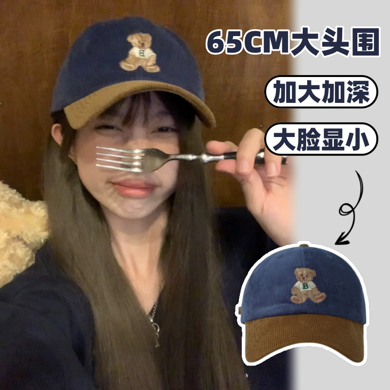 甘いかわいいアニメの熊は色を合わせて野球帽のコーデュロイを刺繍します。