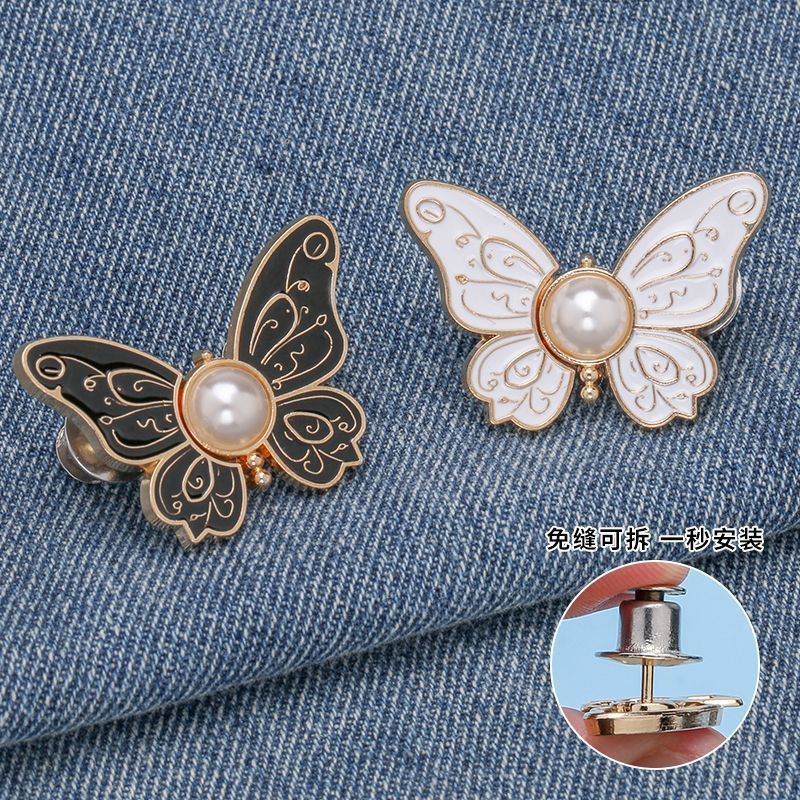パンチなしでウエストを締める蝶ボタン、ジーンズのウエストを小さくする、固定装飾品、パール締めボタン、無料