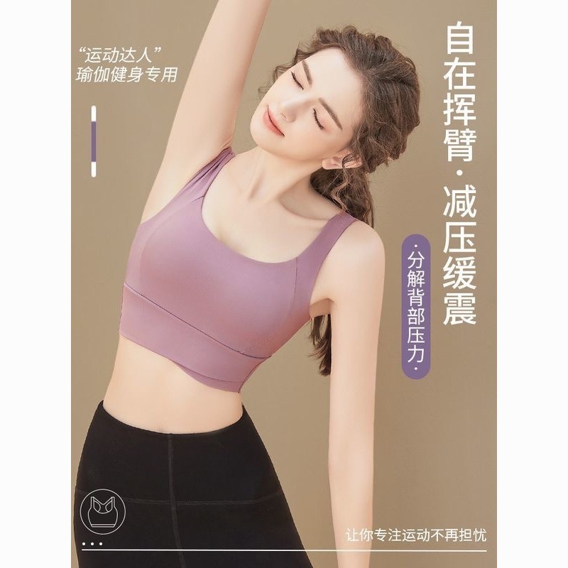 スポーツ下着女性の新型一体式固定胸パッド高強度免震防振集ランニングブラジャー