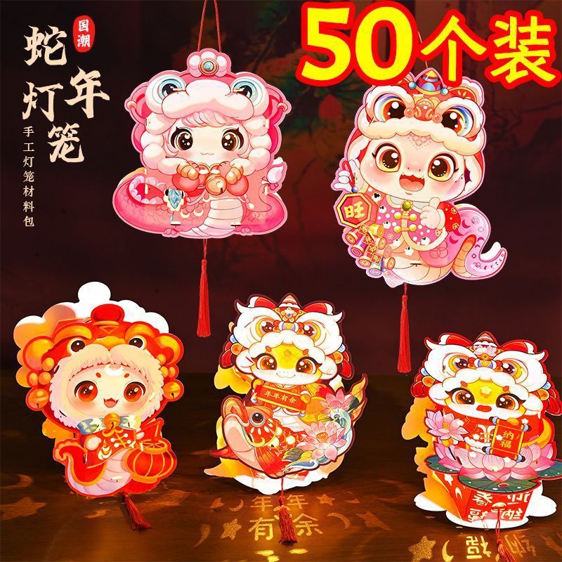 2025新年提灯手作りdiy新型蛇年生肖蛇古風元旦児童幼稚園手に光る