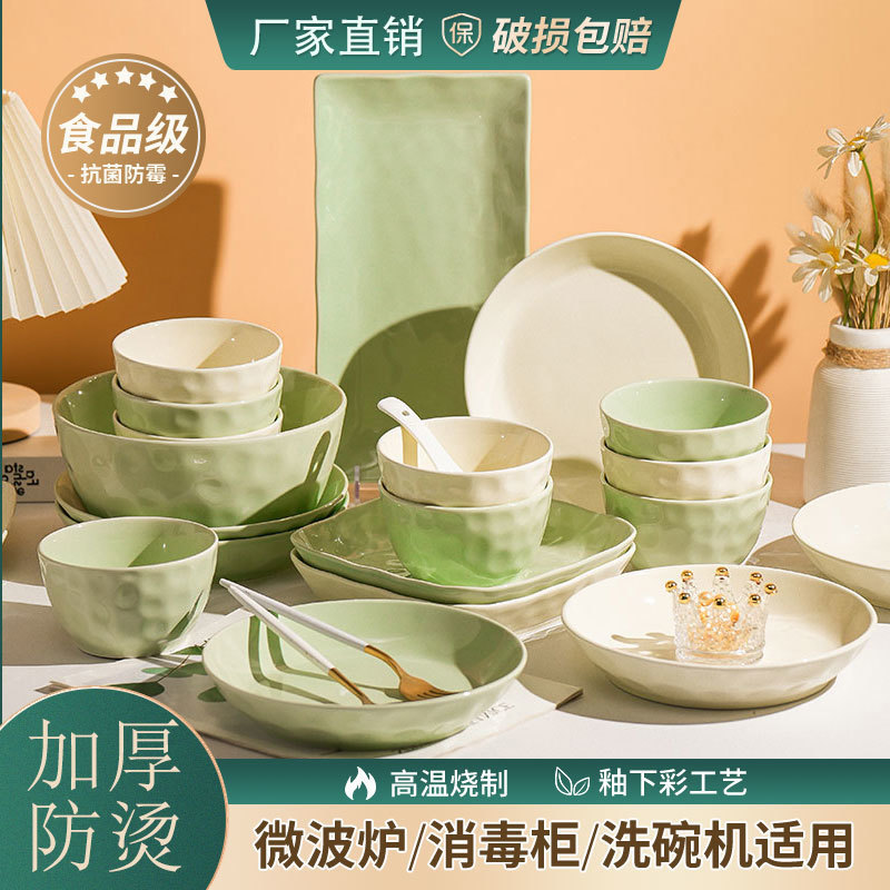 新商品釉薬下彩クリーム風高颜値碗皿食器セット釉薬下彩陶磁器碗皿セット
