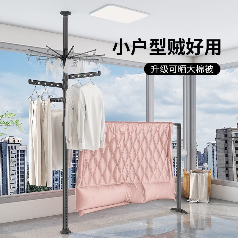 ハンガーは床に落ちて縦型に太くしてフードラックを厚くして、家庭用寝室のベランダの物干し棒で服を干します。