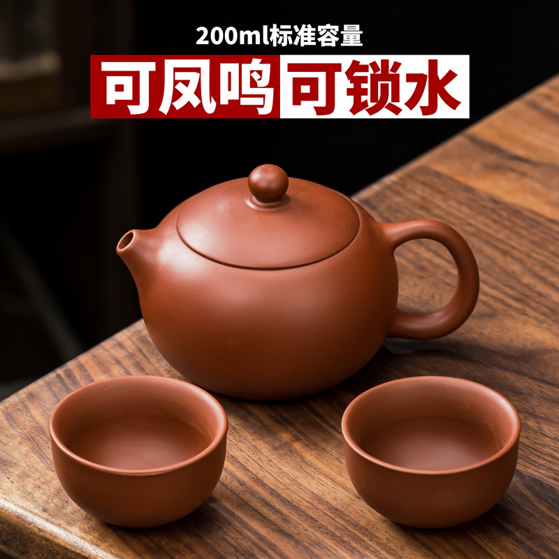 鳳鳴紫砂壺の赤い服の本格的な宜興紫砂急須の手でお茶を入れます。