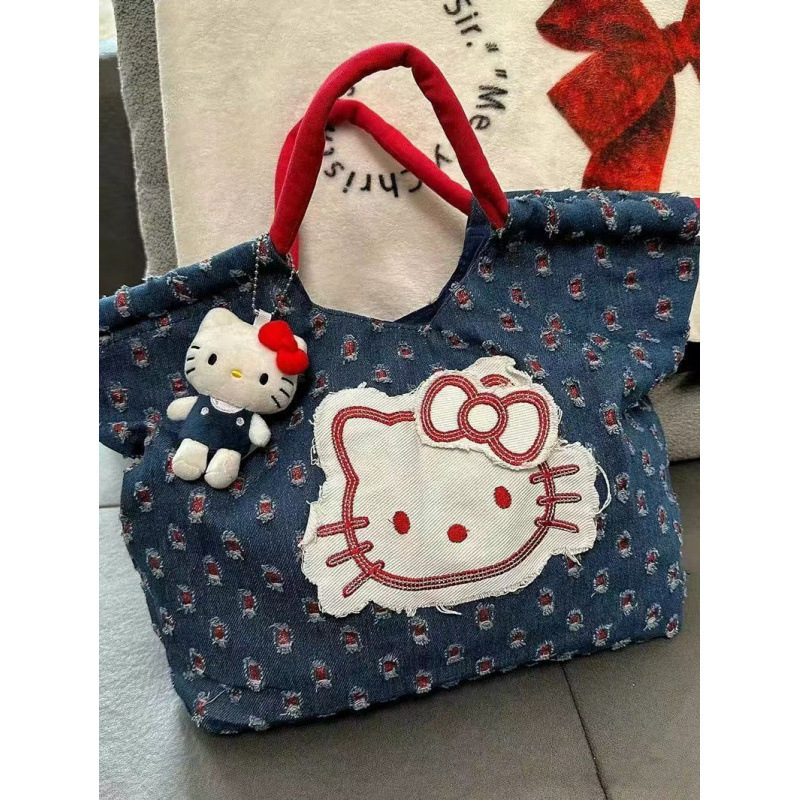 中古ハローキティレトロデニム布張りハンドバッグ2024新作可愛い大容量個性ハンドバッグ