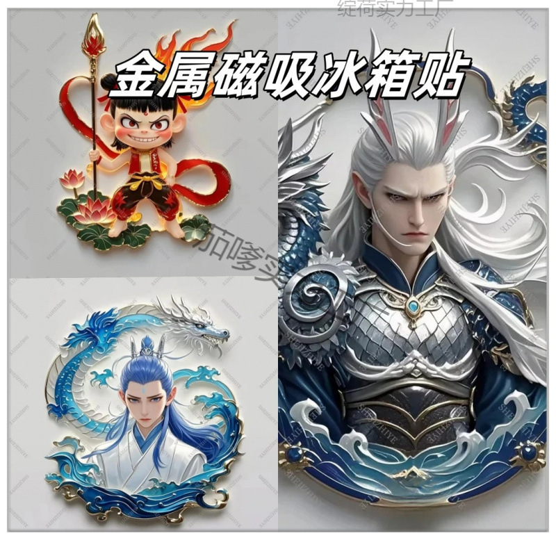 2025新型のナタク2魔童が海周辺の敖丙金属マグネット冷蔵庫にアニメコレクションを貼って記念します。