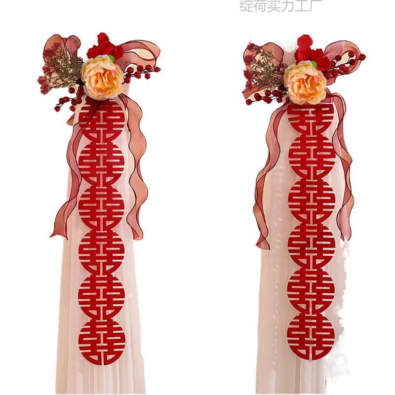 結婚部屋に結婚カーテンを配置して部屋を飾って新しい部屋を飾っています。