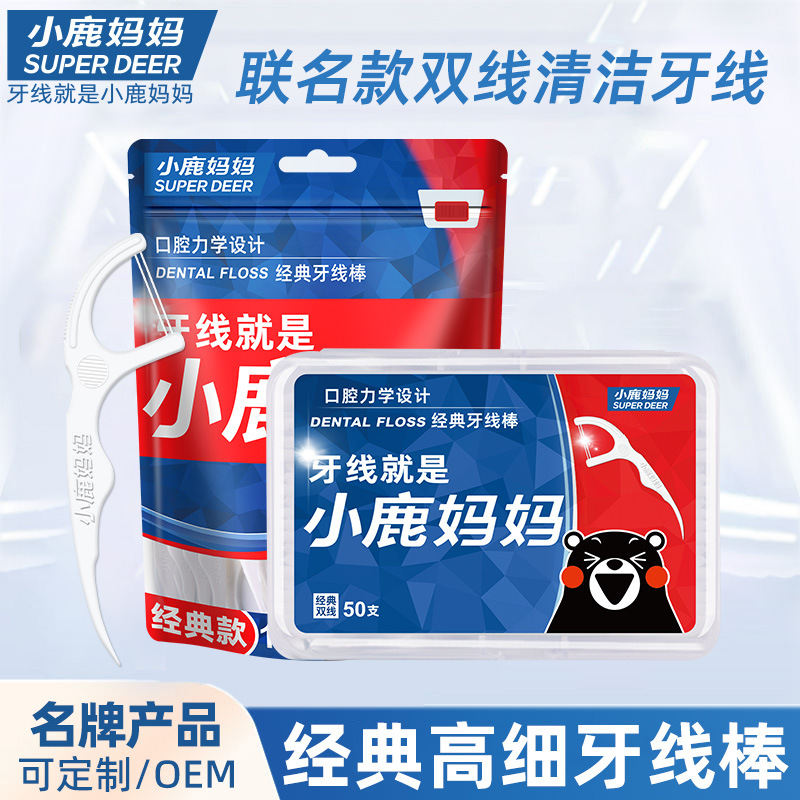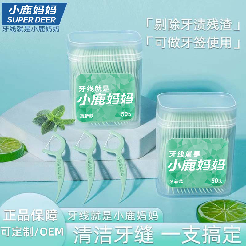 子鹿の母デンタルフロススティック高薄型ファミリーサイズ大人のデンタルフロス安全な使い捨てデンタルフロスピックポータブル 50